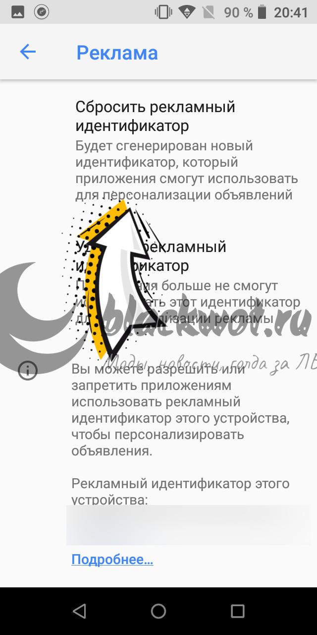 5. Нажимаем «Сбросить рекламный идентификатор»