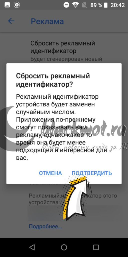 5. Нажимаем «Сбросить рекламный идентификатор»