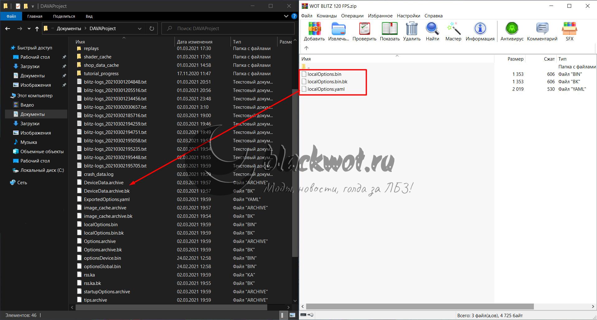 - Далее, перейдите по пути C:\Users\*Имя пользователя*\AppData\Local\wotblitz\DAVAProject