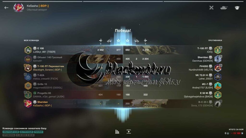 Как видите, игроки победили захватом базы, и у нашего игрока 64% захвата, но опыта наш игрок не получил.