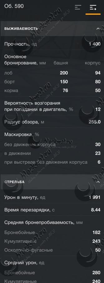 ТТХ и внешний вид танка Об. 590 — VIII уровень