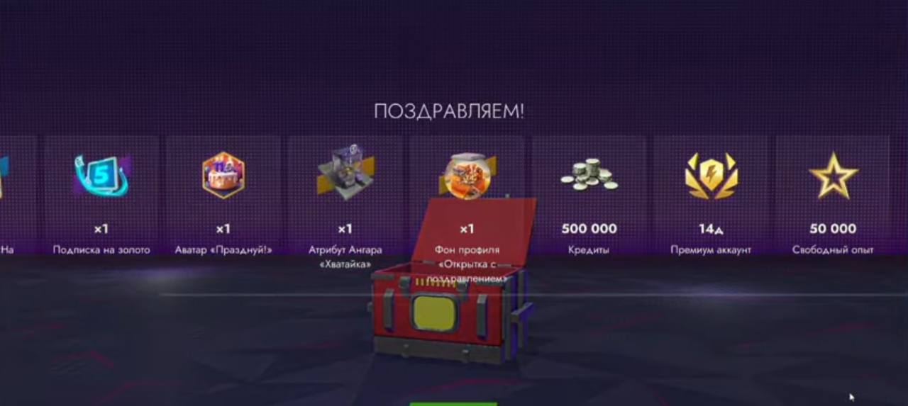 Среди наград пак реакций, аватары, камуфляжи, фоны профиля и атрибут ангара