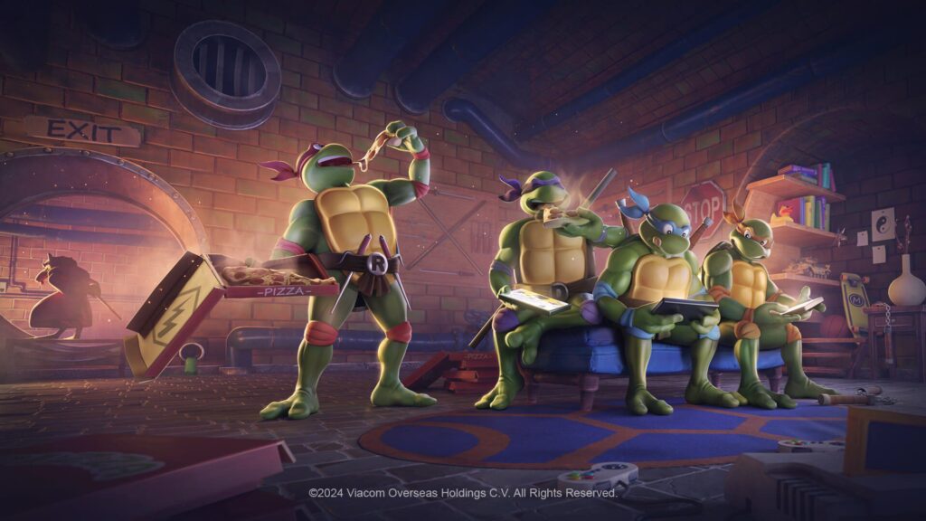 Без помощи команды профессионалов, уже знакомых с этим злодеем, не обойтись. Вместе с черепашками-ниндзя вы расправитесь с ним в два счёта! Но подготовку к схватке стоит начать как можно скорее. Вот почему мы сейчас здесь, в логове черепашек!