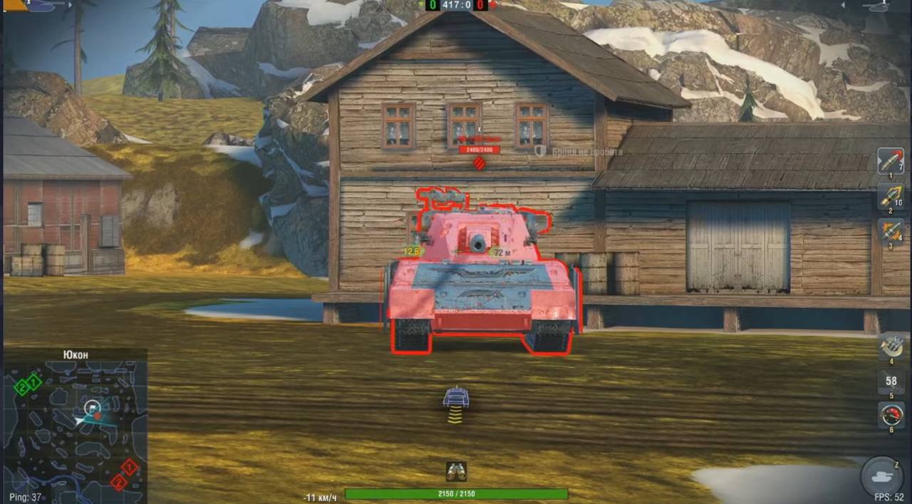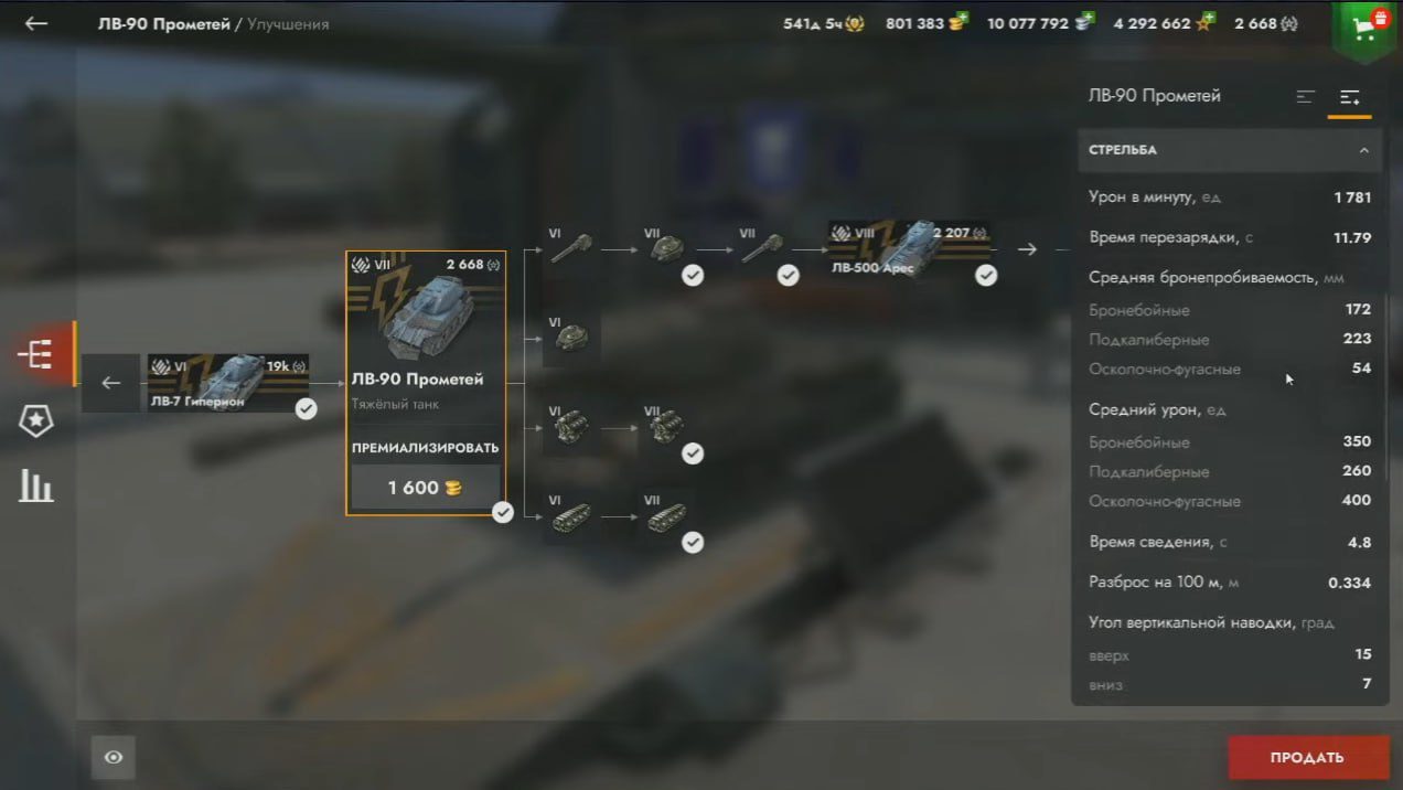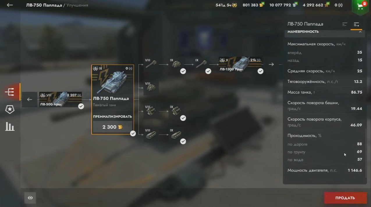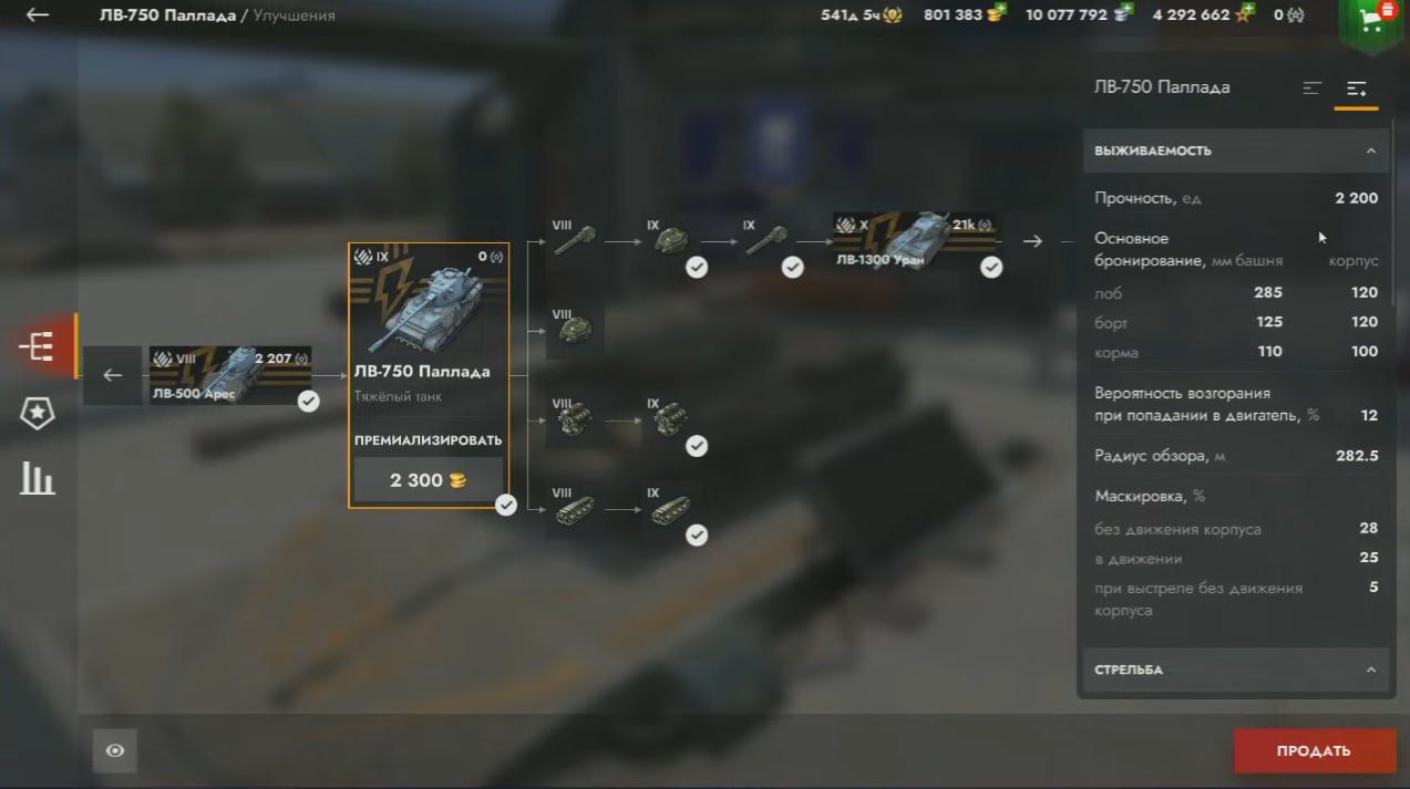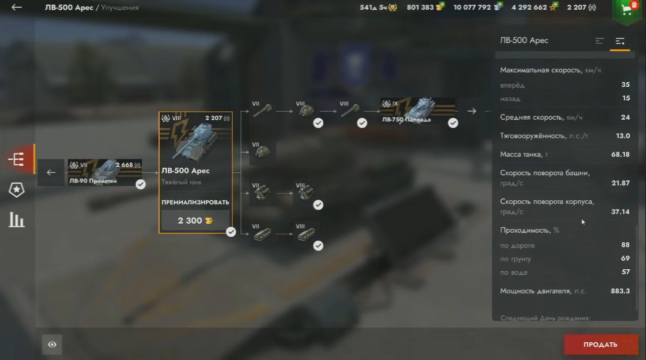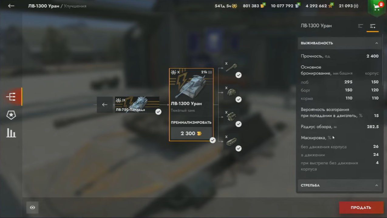 Она обладает интересной механикой — Закрытие щитов. Доступно по кнопке в бою, перезарядка 7 секунд. Вы можете переключить расположение экранов с бортов на лоб. Если экраны сдвинуты вперёд, скорость и разгон танка уменьшены на 30%.
