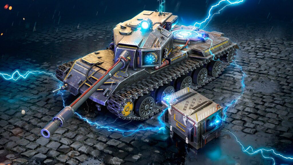 Электрический двигатель, низкий силуэт, достойное лобовое бронирование и, конечно, орудие с впечатляющим уроном в минуту и магазином на 3 снаряда. Вытащи его из контейнера прямо сейчас или проходи квест «Высокое напряжение» и получи шанс поставить его в Ангар бесплатно!