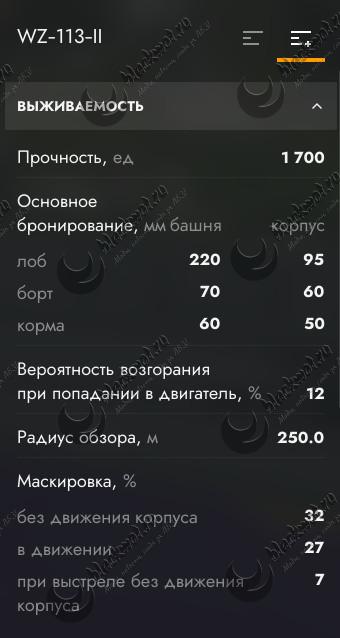 ТТХ и внешний вид танка WZ-113-II — VIII уровень