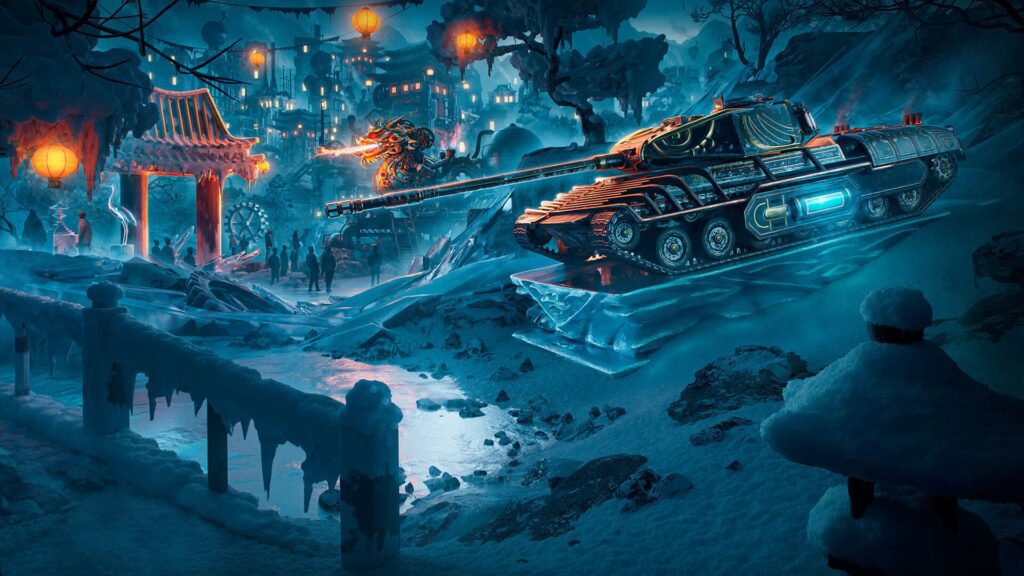 Если заметишь голубое сияние, не бойся — это криогенная энергия питает город. Скорее двигай внутрь, любуйся красотой и силой инженерной мысли! Тут тебя уже ждут ресурсы, боевые раскраски, аватары и легендарный камуфляж Wujiang для VIII BZ-166.