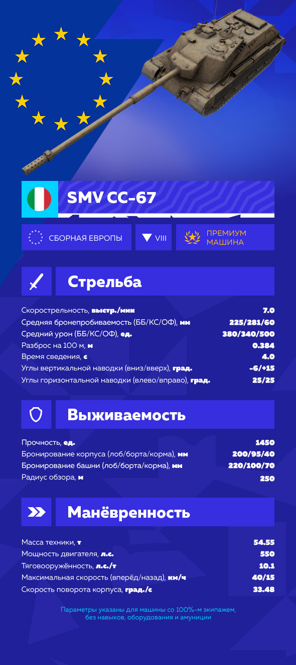 И пусть враг тщетно стреляет вдогонку. Даже если у него хватит прыти на попадание по SMV CC-67 — прочная броня выдержит. Эта итальянская штучка полна жизни!
