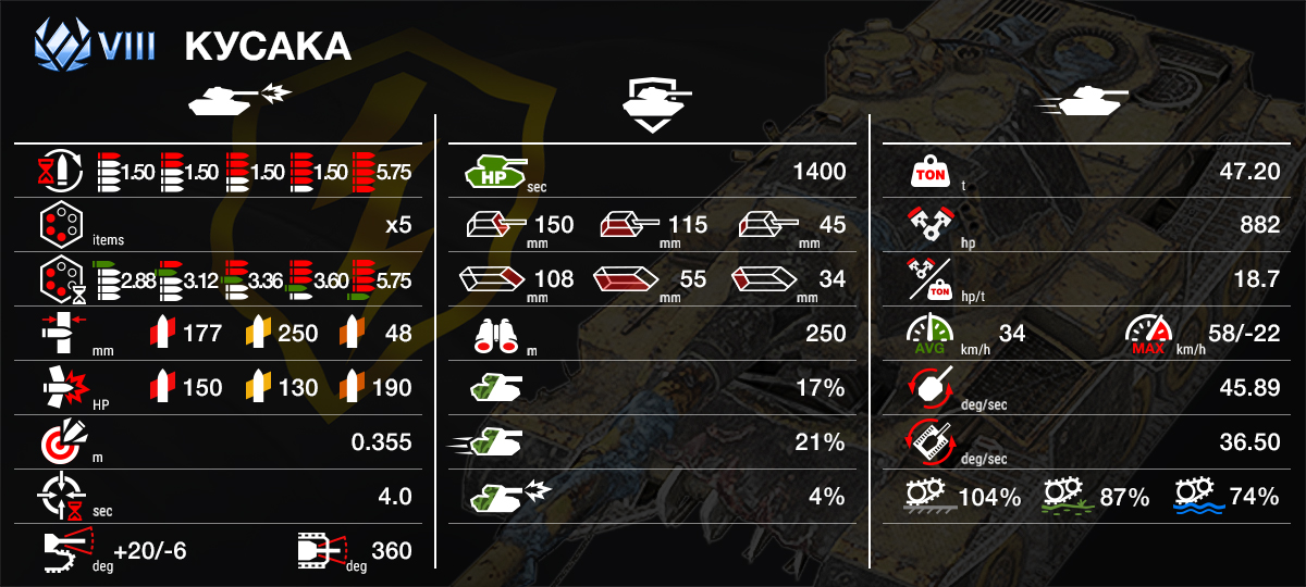 Стоит Кусаке показаться на горизонте, кровь стынет в жилах! Не теряя ни секунды, он вгрызается в ближайшего противника, опустошая пятизарядный барабан. Но даже после этого Кусака остаётся смертельно опасным: его орудие с последовательной дозарядкой позволяет стрелять, не дожидаясь полной перезарядки магазина.