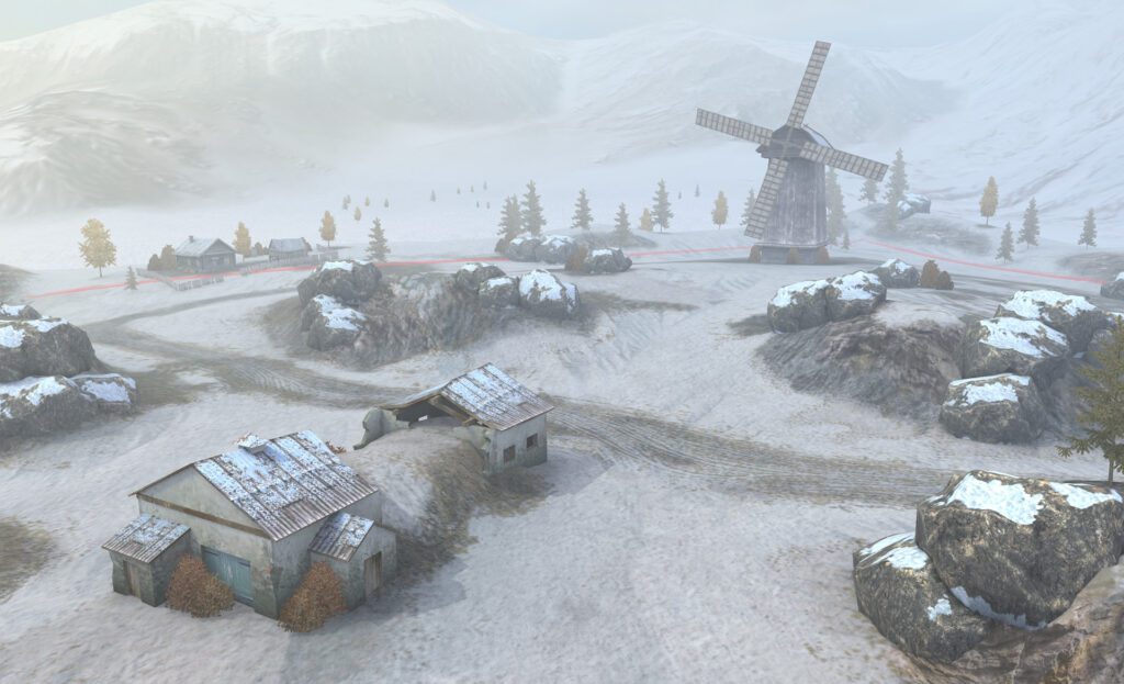 - Отбалансированы прострелы со съездов к замерзшему озеру в центре карты