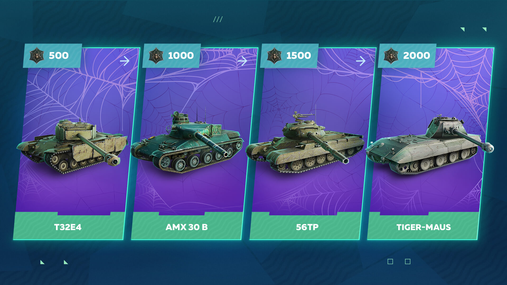 Метки паука. Обменивай их на экране события на крутой лут: бустеры голды, сертификаты на исследование техники, свободный опыт, кредиты, технику — всё необходимое, чтобы нарастить мощь перед битвой. А также жутко крутую кастомизацию, которая поможет тебе ощутить себя в паучьей шкуре.