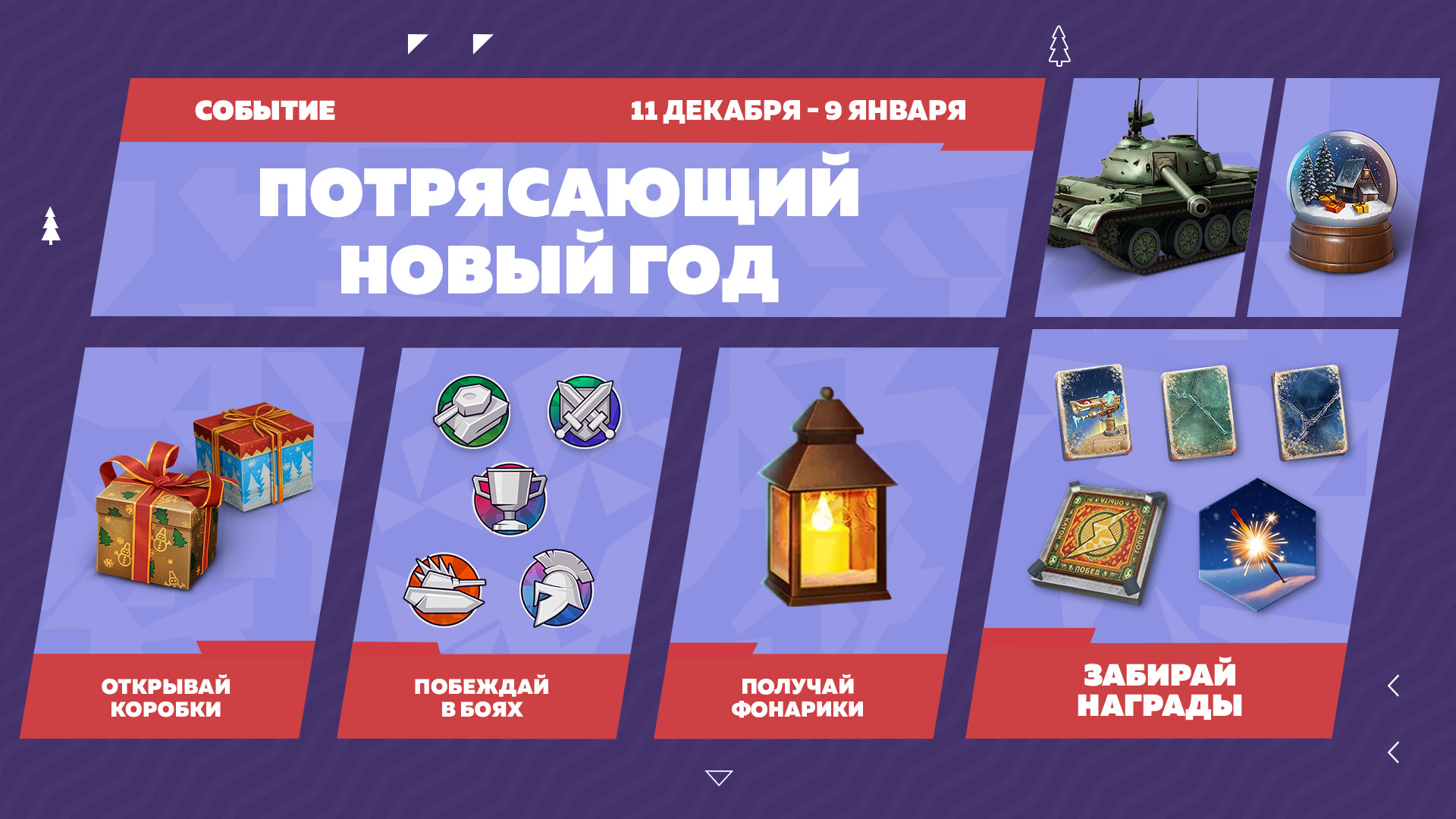 Фонарики за победы в боях на танках IV–X уровней — и они осветят твой путь к чудесным призам. Есть ещё два способа заполучить самое ценное: открывай