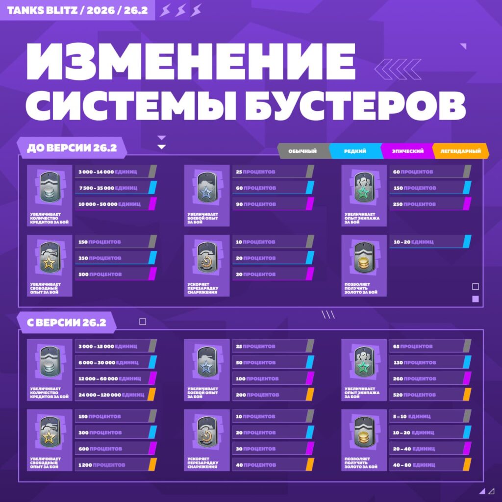 - У всех видов бустеров появится новый легендарный грейд.