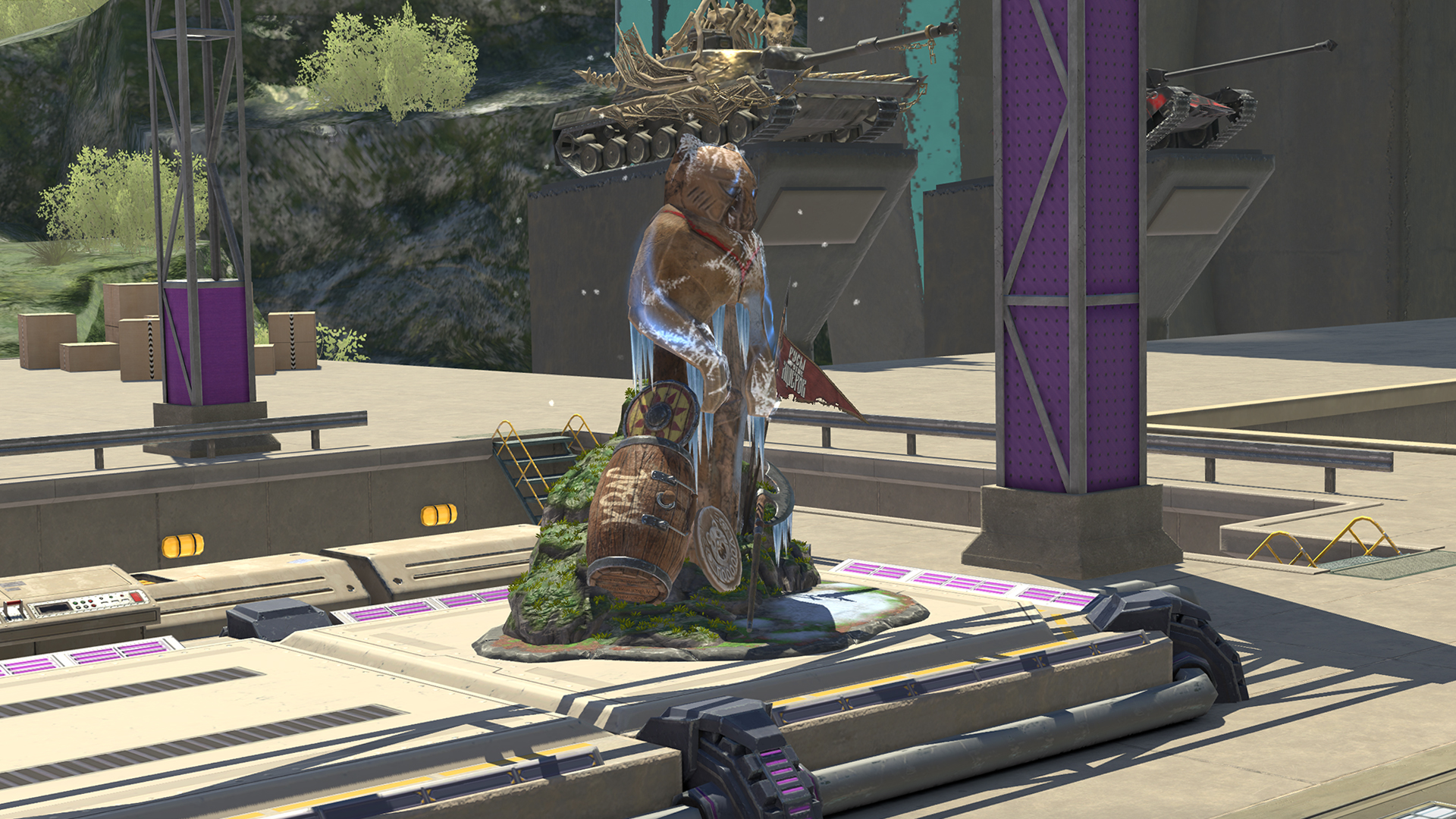 ⚔️🦎«Русы против Ящеров» возвращаются в Tanks Blitz! И несут с собой контейнеры с диковинным скарбом да богатыми ресурсами. Экая оказия снова очутиться в этой чудесной коллабе! Потешат тебя не только уже знакомые награды, но и диво дивное, досель невиданное — атрибут Ангара «Аннигиляторный медведеоцентр». Он и в воде не тонет, и в огне не горит, и стужи лютой не боится, а как стоял с незапамятных времён, так ещё столько же и простоит.