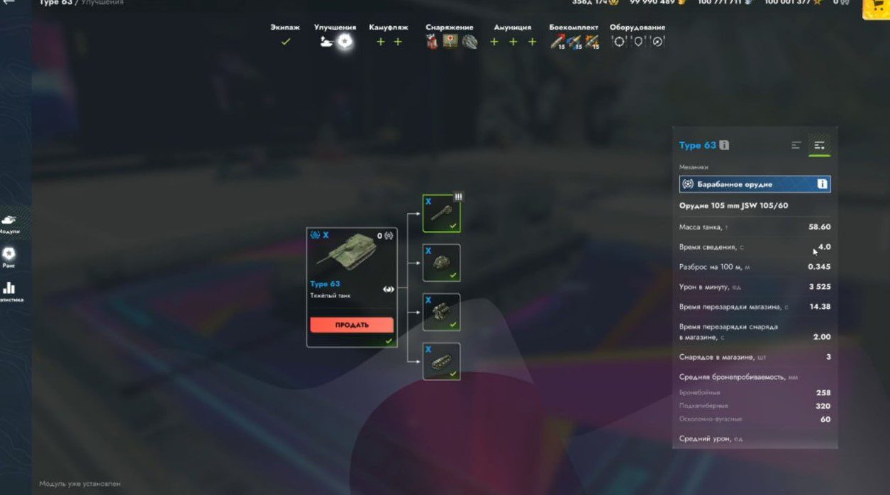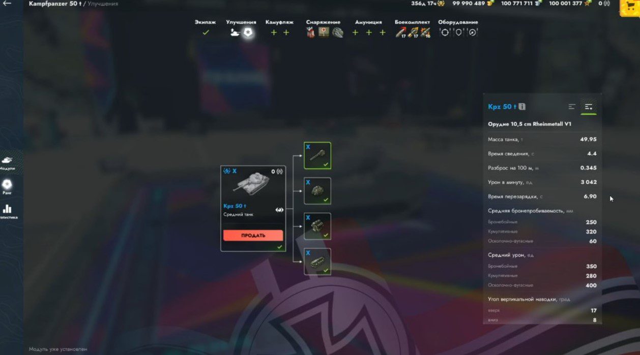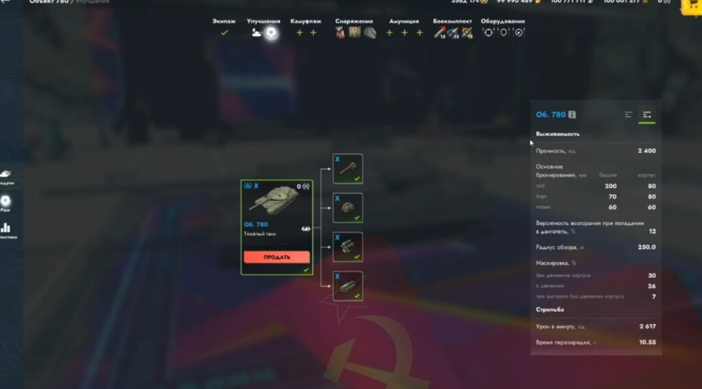 - Апы: увеличен запас прочности (ХП), усилено бронирование корпуса и поднят ДПМ (базовый показатель — около 3000 ед.).