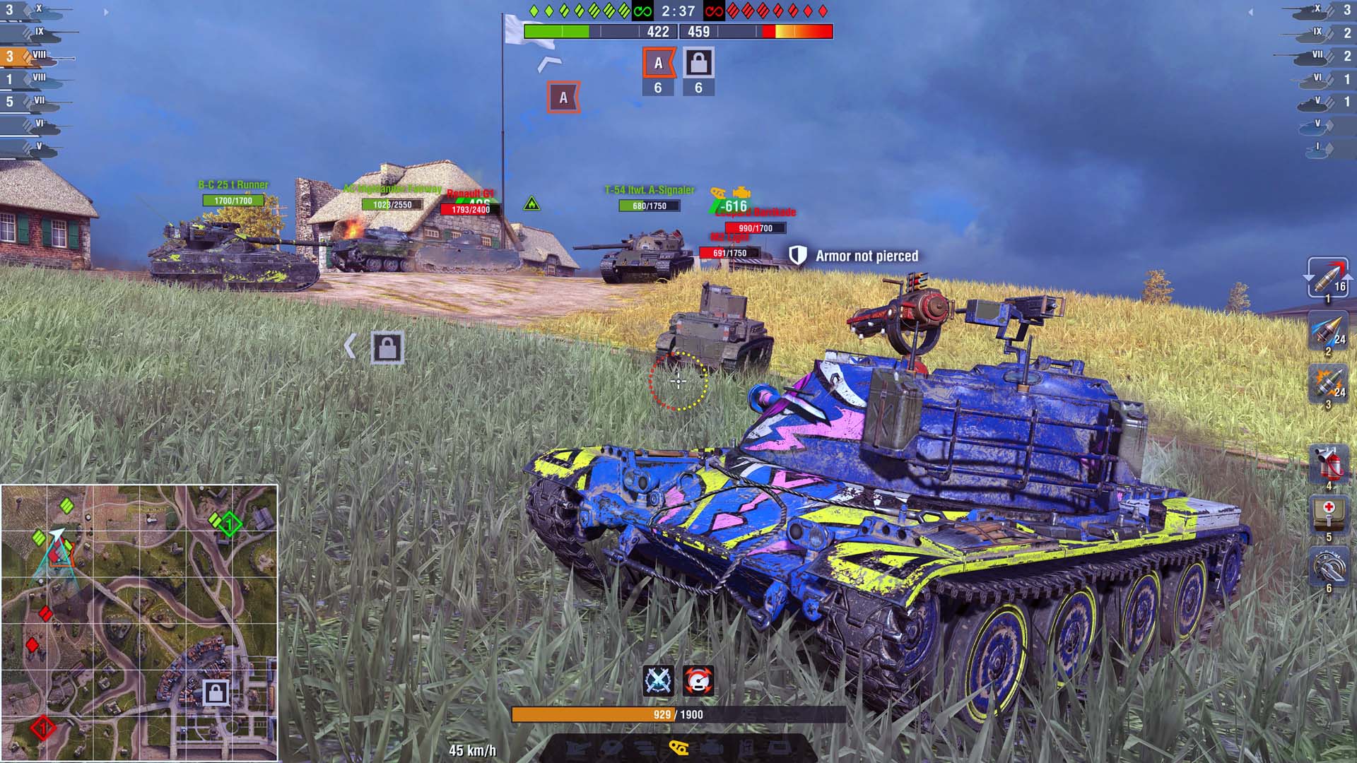В новом фановом режиме на одном поле битвы сойдутся танки любых уровней: от песочного МС-1 до грозного Maus! Но не советуем смотреть свысока на технику уровнем пониже, ведь все машины в бою получат мощный буст к характеристикам, чтобы сравняться с «десятками».