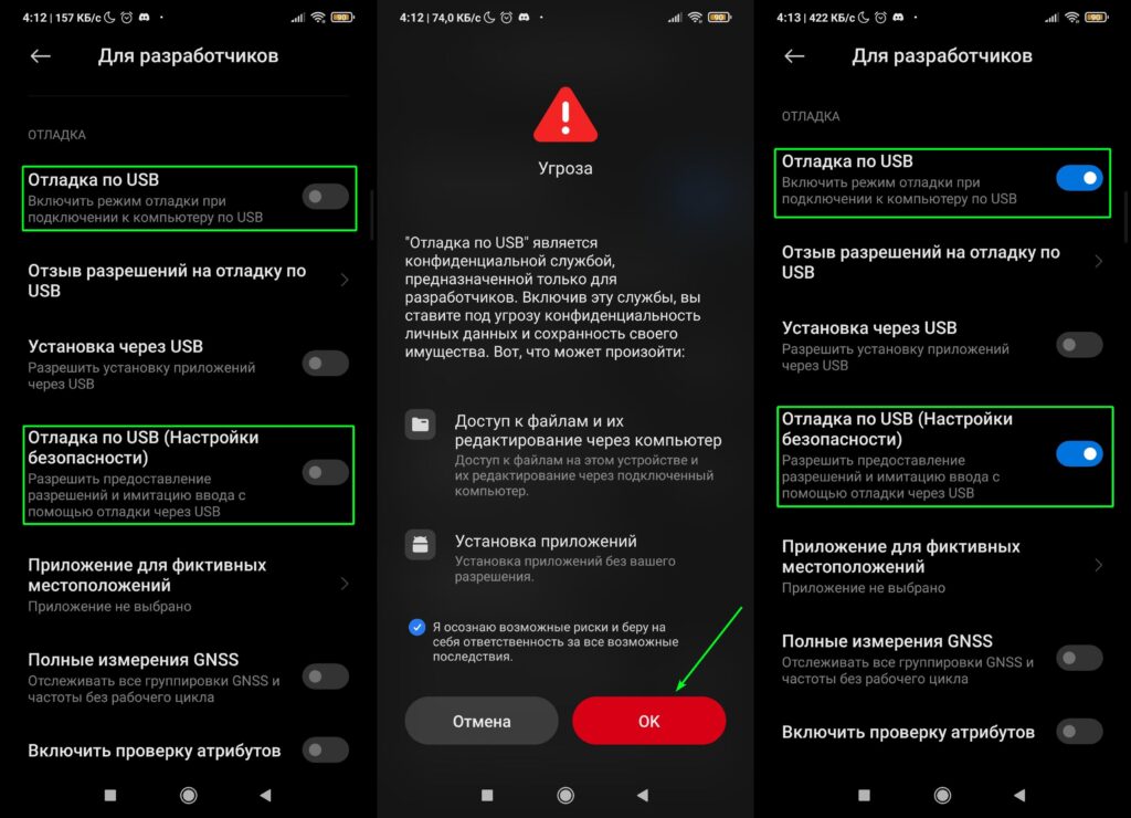 Первым делом подключаем телефон/планшет к компьютеру и разрешаем отладку с нашим ПК на телефоне.