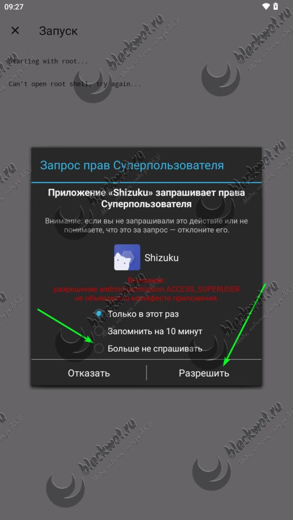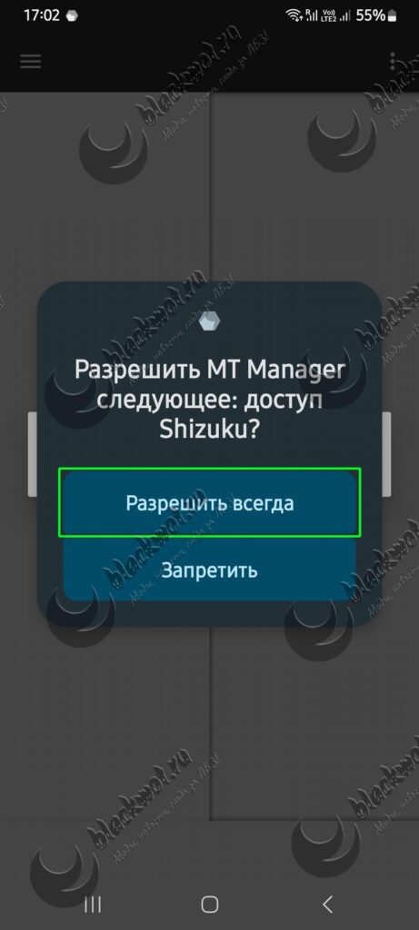 При запуске MT Manager попросит разрешение на доступ к Shizuku. Смело разрешаем доступ.