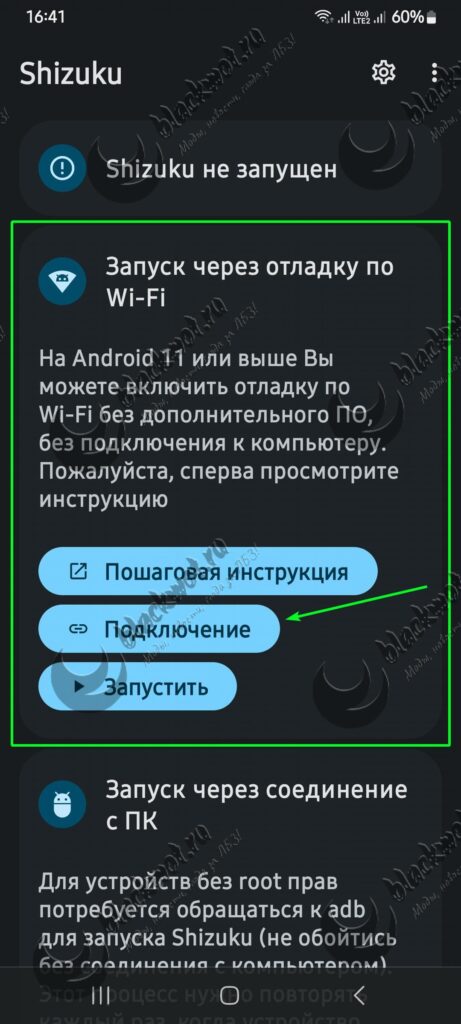 Запуск Shizuku (Wi-Fi) (рекомендуем!)