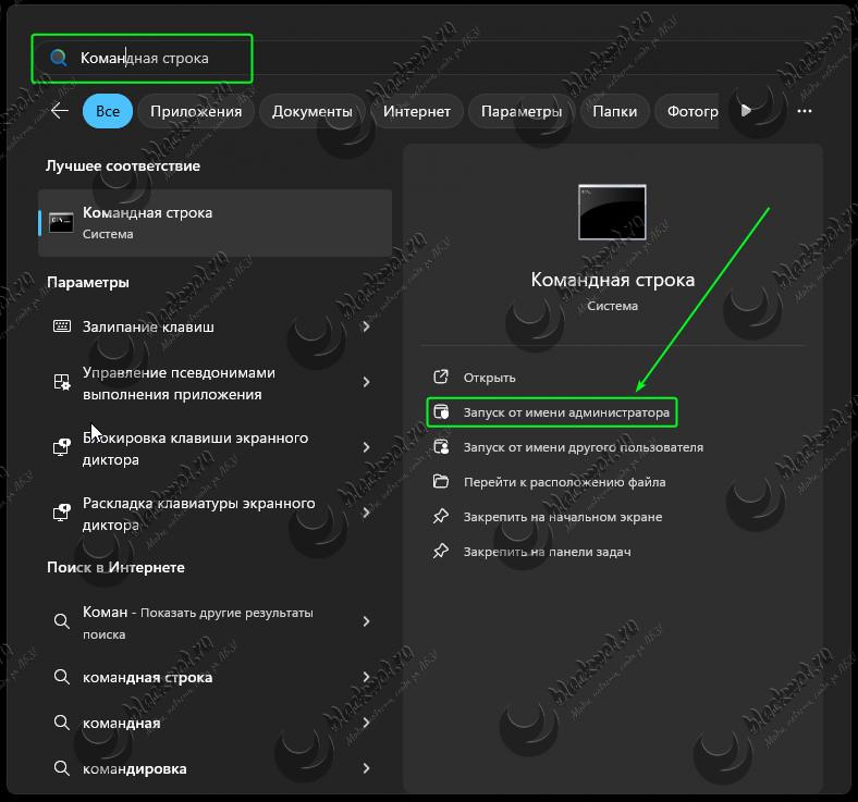 На компьютере через меню ПУСК находим и запускаем с правами администратора «Командную строку».
