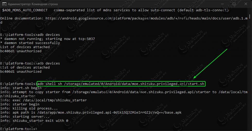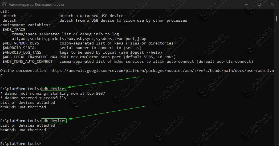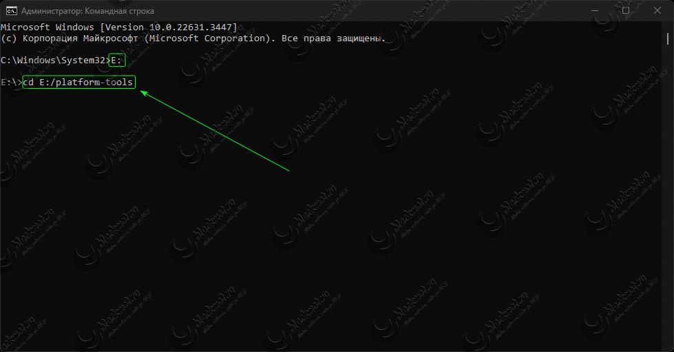 Мы будем использовать папку E:/platform-tools, так что в нашем случае команды будут выглядеть так: